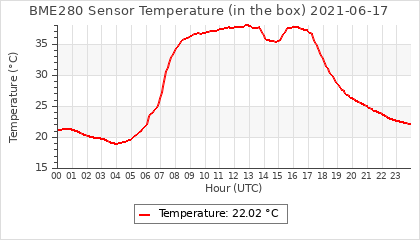 Experimental atmospheric pressure measurement with a simple sensor: BOSCH BME280The instrument is in the data collection box of the CR10X, the temperature and humidity do not reflect the real air conditions, because the box is in the sun and is not properly ventilated for these measurements.