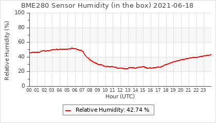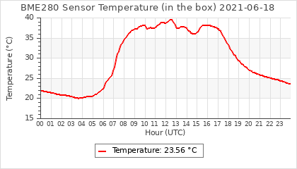 Experimental atmospheric pressure measurement with a simple sensor: BOSCH BME280The instrument is in the data collection box of the CR10X, the temperature and humidity do not reflect the real air conditions, because the box is in the sun and is not properly ventilated for these measurements.
