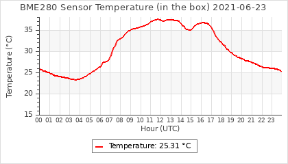 Experimental atmospheric pressure measurement with a simple sensor: BOSCH BME280The instrument is in the data collection box of the CR10X, the temperature and humidity do not reflect the real air conditions, because the box is in the sun and is not properly ventilated for these measurements.