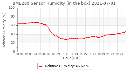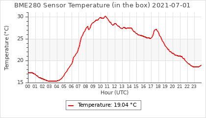 Experimental atmospheric pressure measurement with a simple sensor: BOSCH BME280The instrument is in the data collection box of the CR10X, the temperature and humidity do not reflect the real air conditions, because the box is in the sun and is not properly ventilated for these measurements.