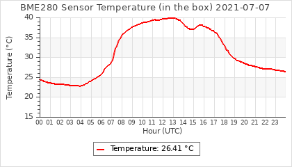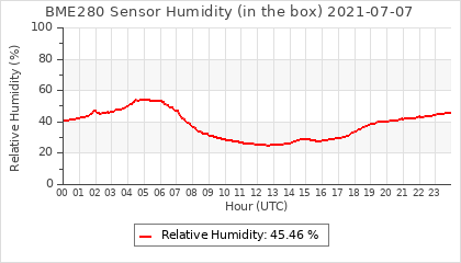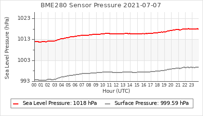 Experimental atmospheric pressure measurement with a simple sensor: BOSCH BME280The instrument is in the data collection box of the CR10X, the temperature and humidity do not reflect the real air conditions, because the box is in the sun and is not properly ventilated for these measurements.