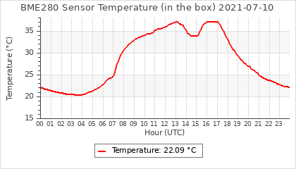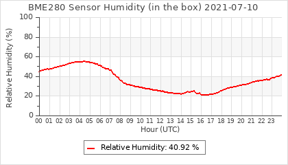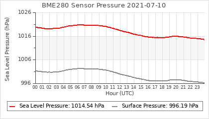 Experimental atmospheric pressure measurement with a simple sensor: BOSCH BME280The instrument is in the data collection box of the CR10X, the temperature and humidity do not reflect the real air conditions, because the box is in the sun and is not properly ventilated for these measurements.