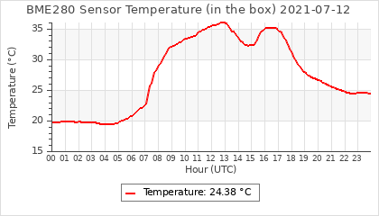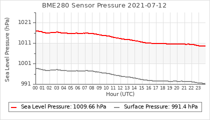 Experimental atmospheric pressure measurement with a simple sensor: BOSCH BME280The instrument is in the data collection box of the CR10X, the temperature and humidity do not reflect the real air conditions, because the box is in the sun and is not properly ventilated for these measurements.