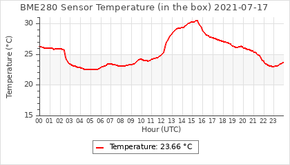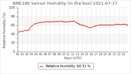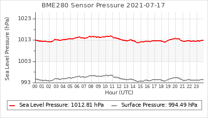 Experimental atmospheric pressure measurement with a simple sensor: BOSCH BME280The instrument is in the data collection box of the CR10X, the temperature and humidity do not reflect the real air conditions, because the box is in the sun and is not properly ventilated for these measurements.