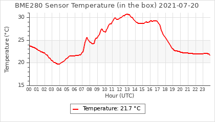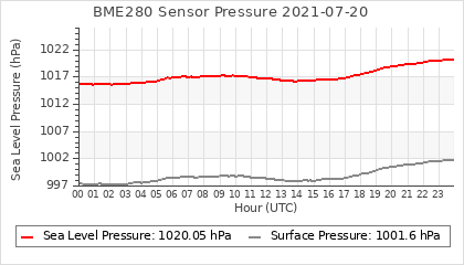 Experimental atmospheric pressure measurement with a simple sensor: BOSCH BME280The instrument is in the data collection box of the CR10X, the temperature and humidity do not reflect the real air conditions, because the box is in the sun and is not properly ventilated for these measurements.