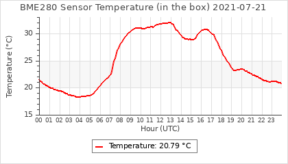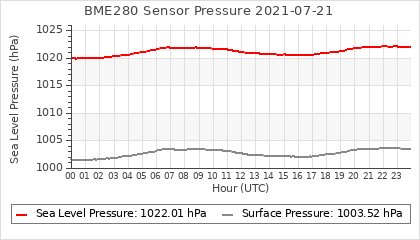 Experimental atmospheric pressure measurement with a simple sensor: BOSCH BME280The instrument is in the data collection box of the CR10X, the temperature and humidity do not reflect the real air conditions, because the box is in the sun and is not properly ventilated for these measurements.