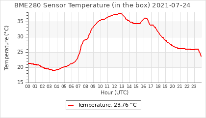 Experimental atmospheric pressure measurement with a simple sensor: BOSCH BME280The instrument is in the data collection box of the CR10X, the temperature and humidity do not reflect the real air conditions, because the box is in the sun and is not properly ventilated for these measurements.
