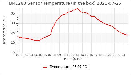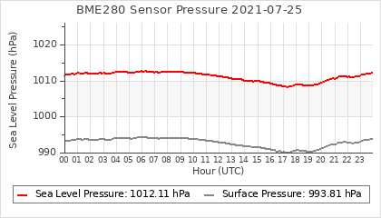 Experimental atmospheric pressure measurement with a simple sensor: BOSCH BME280The instrument is in the data collection box of the CR10X, the temperature and humidity do not reflect the real air conditions, because the box is in the sun and is not properly ventilated for these measurements.