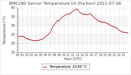 Experimental atmospheric pressure measurement with a simple sensor: BOSCH BME280The instrument is in the data collection box of the CR10X, the temperature and humidity do not reflect the real air conditions, because the box is in the sun and is not properly ventilated for these measurements.