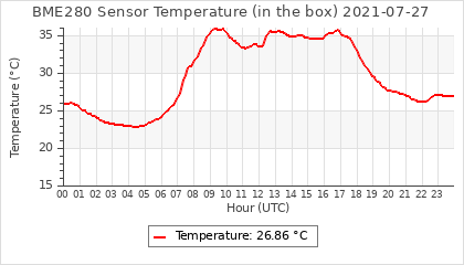 Experimental atmospheric pressure measurement with a simple sensor: BOSCH BME280The instrument is in the data collection box of the CR10X, the temperature and humidity do not reflect the real air conditions, because the box is in the sun and is not properly ventilated for these measurements.