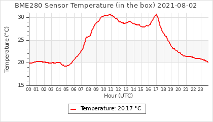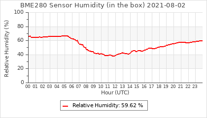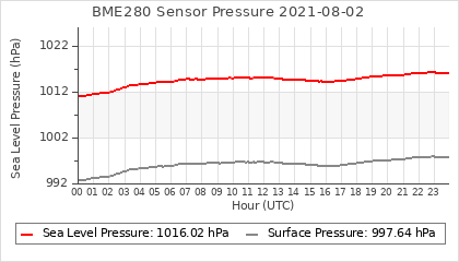 Experimental atmospheric pressure measurement with a simple sensor: BOSCH BME280The instrument is in the data collection box of the CR10X, the temperature and humidity do not reflect the real air conditions, because the box is in the sun and is not properly ventilated for these measurements.