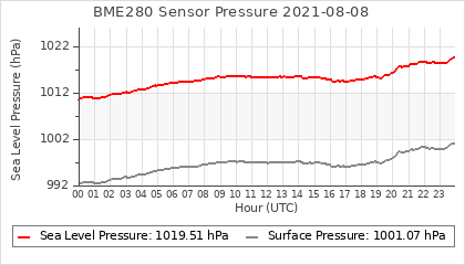Experimental atmospheric pressure measurement with a simple sensor: BOSCH BME280The instrument is in the data collection box of the CR10X, the temperature and humidity do not reflect the real air conditions, because the box is in the sun and is not properly ventilated for these measurements.