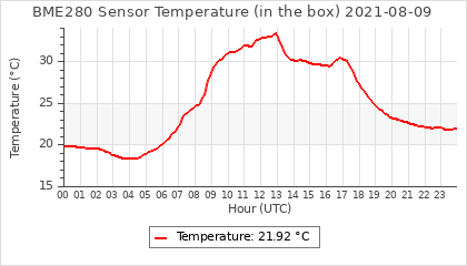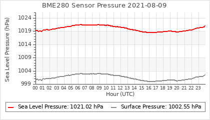 Experimental atmospheric pressure measurement with a simple sensor: BOSCH BME280The instrument is in the data collection box of the CR10X, the temperature and humidity do not reflect the real air conditions, because the box is in the sun and is not properly ventilated for these measurements.