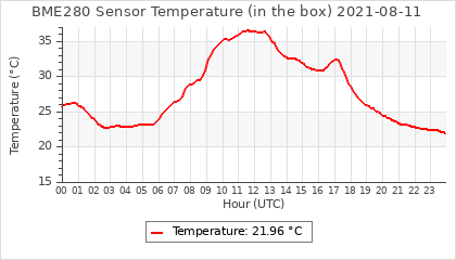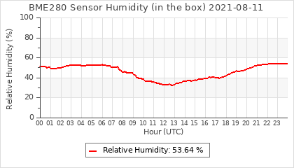 Experimental atmospheric pressure measurement with a simple sensor: BOSCH BME280The instrument is in the data collection box of the CR10X, the temperature and humidity do not reflect the real air conditions, because the box is in the sun and is not properly ventilated for these measurements.