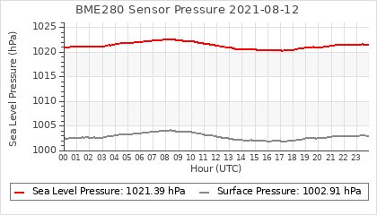 Experimental atmospheric pressure measurement with a simple sensor: BOSCH BME280The instrument is in the data collection box of the CR10X, the temperature and humidity do not reflect the real air conditions, because the box is in the sun and is not properly ventilated for these measurements.