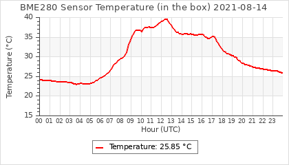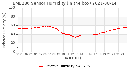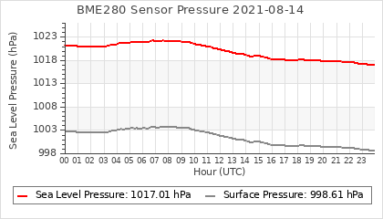Experimental atmospheric pressure measurement with a simple sensor: BOSCH BME280The instrument is in the data collection box of the CR10X, the temperature and humidity do not reflect the real air conditions, because the box is in the sun and is not properly ventilated for these measurements.