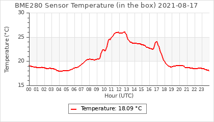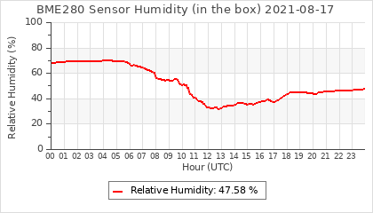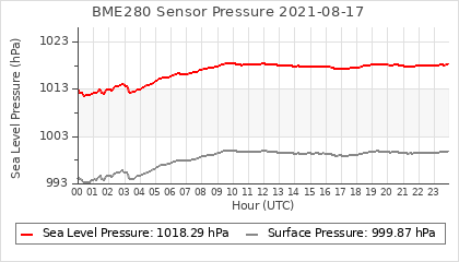 Experimental atmospheric pressure measurement with a simple sensor: BOSCH BME280The instrument is in the data collection box of the CR10X, the temperature and humidity do not reflect the real air conditions, because the box is in the sun and is not properly ventilated for these measurements.