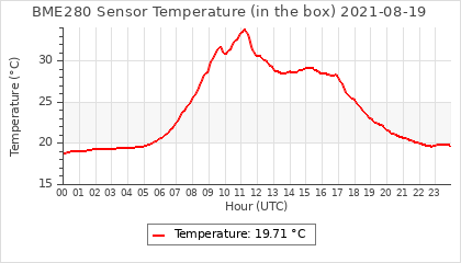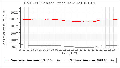 Experimental atmospheric pressure measurement with a simple sensor: BOSCH BME280The instrument is in the data collection box of the CR10X, the temperature and humidity do not reflect the real air conditions, because the box is in the sun and is not properly ventilated for these measurements.