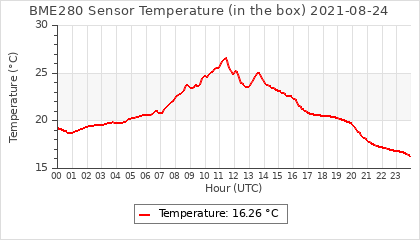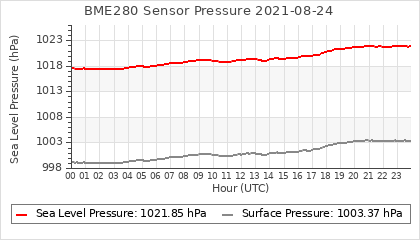 Experimental atmospheric pressure measurement with a simple sensor: BOSCH BME280The instrument is in the data collection box of the CR10X, the temperature and humidity do not reflect the real air conditions, because the box is in the sun and is not properly ventilated for these measurements.