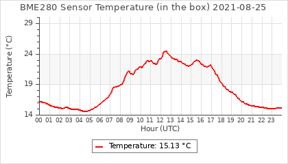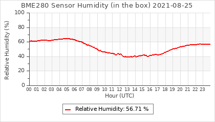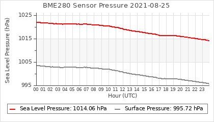Experimental atmospheric pressure measurement with a simple sensor: BOSCH BME280The instrument is in the data collection box of the CR10X, the temperature and humidity do not reflect the real air conditions, because the box is in the sun and is not properly ventilated for these measurements.