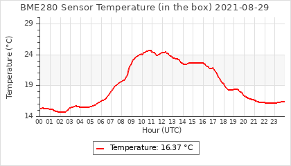Experimental atmospheric pressure measurement with a simple sensor: BOSCH BME280The instrument is in the data collection box of the CR10X, the temperature and humidity do not reflect the real air conditions, because the box is in the sun and is not properly ventilated for these measurements.