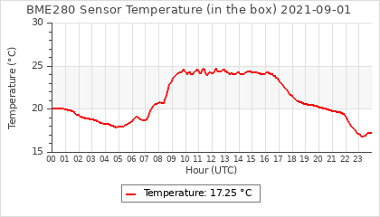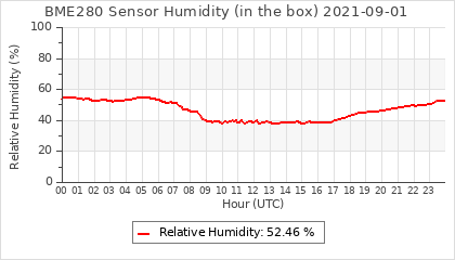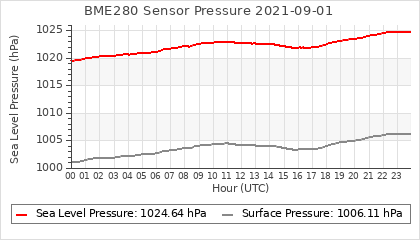 Experimental atmospheric pressure measurement with a simple sensor: BOSCH BME280The instrument is in the data collection box of the CR10X, the temperature and humidity do not reflect the real air conditions, because the box is in the sun and is not properly ventilated for these measurements.