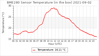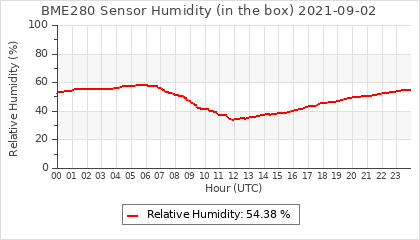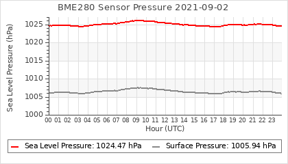Experimental atmospheric pressure measurement with a simple sensor: BOSCH BME280The instrument is in the data collection box of the CR10X, the temperature and humidity do not reflect the real air conditions, because the box is in the sun and is not properly ventilated for these measurements.