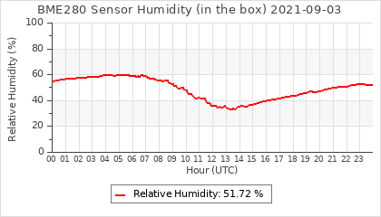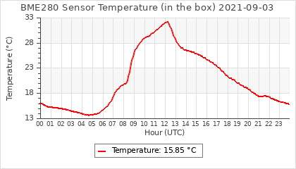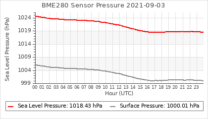Experimental atmospheric pressure measurement with a simple sensor: BOSCH BME280The instrument is in the data collection box of the CR10X, the temperature and humidity do not reflect the real air conditions, because the box is in the sun and is not properly ventilated for these measurements.