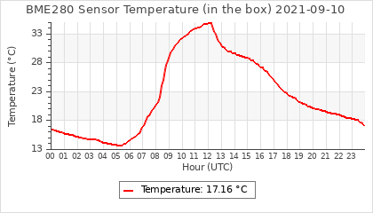 Experimental atmospheric pressure measurement with a simple sensor: BOSCH BME280The instrument is in the data collection box of the CR10X, the temperature and humidity do not reflect the real air conditions, because the box is in the sun and is not properly ventilated for these measurements.