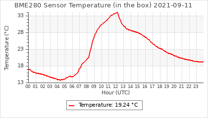 Experimental atmospheric pressure measurement with a simple sensor: BOSCH BME280The instrument is in the data collection box of the CR10X, the temperature and humidity do not reflect the real air conditions, because the box is in the sun and is not properly ventilated for these measurements.