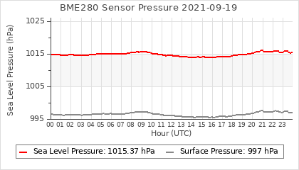Experimental atmospheric pressure measurement with a simple sensor: BOSCH BME280The instrument is in the data collection box of the CR10X, the temperature and humidity do not reflect the real air conditions, because the box is in the sun and is not properly ventilated for these measurements.