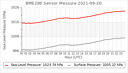 Experimental atmospheric pressure measurement with a simple sensor: BOSCH BME280The instrument is in the data collection box of the CR10X, the temperature and humidity do not reflect the real air conditions, because the box is in the sun and is not properly ventilated for these measurements.