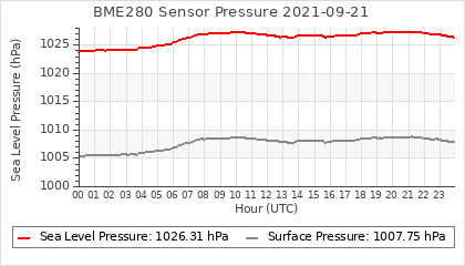 Experimental atmospheric pressure measurement with a simple sensor: BOSCH BME280The instrument is in the data collection box of the CR10X, the temperature and humidity do not reflect the real air conditions, because the box is in the sun and is not properly ventilated for these measurements.