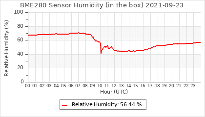 Experimental atmospheric pressure measurement with a simple sensor: BOSCH BME280The instrument is in the data collection box of the CR10X, the temperature and humidity do not reflect the real air conditions, because the box is in the sun and is not properly ventilated for these measurements.
