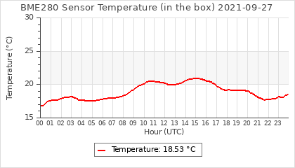Experimental atmospheric pressure measurement with a simple sensor: BOSCH BME280The instrument is in the data collection box of the CR10X, the temperature and humidity do not reflect the real air conditions, because the box is in the sun and is not properly ventilated for these measurements.