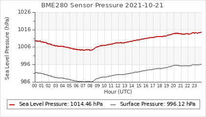 Experimental atmospheric pressure measurement with a simple sensor: BOSCH BME280The instrument is in the data collection box of the CR10X, the temperature and humidity do not reflect the real air conditions, because the box is in the sun and is not properly ventilated for these measurements.