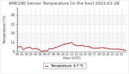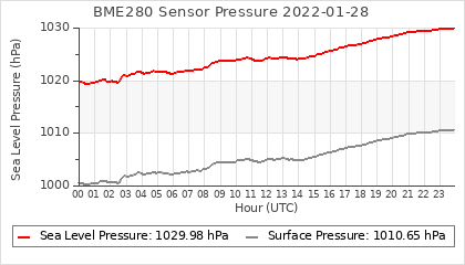 Experimental atmospheric pressure measurement with a simple sensor: BOSCH BME280The instrument is in the data collection box of the CR10X, the temperature and humidity do not reflect the real air conditions, because the box is in the sun and is not properly ventilated for these measurements.