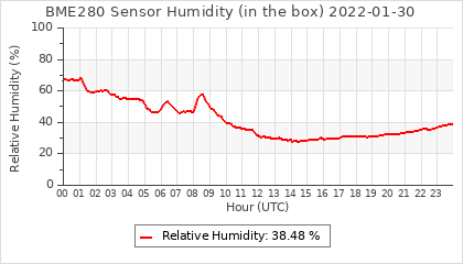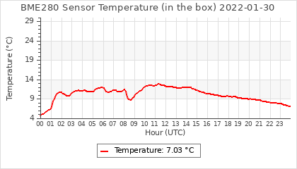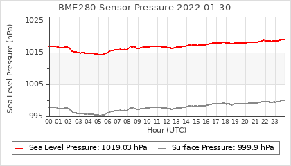 Experimental atmospheric pressure measurement with a simple sensor: BOSCH BME280The instrument is in the data collection box of the CR10X, the temperature and humidity do not reflect the real air conditions, because the box is in the sun and is not properly ventilated for these measurements.