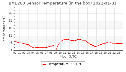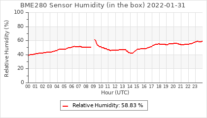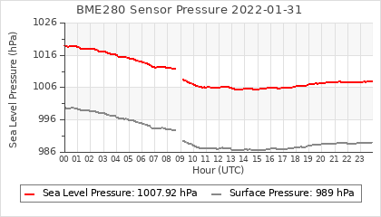 Experimental atmospheric pressure measurement with a simple sensor: BOSCH BME280The instrument is in the data collection box of the CR10X, the temperature and humidity do not reflect the real air conditions, because the box is in the sun and is not properly ventilated for these measurements.
