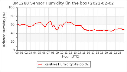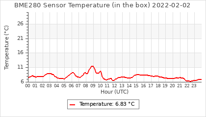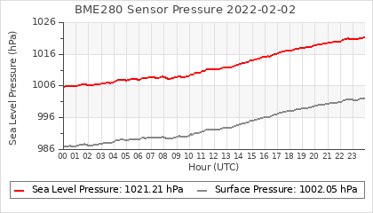Experimental atmospheric pressure measurement with a simple sensor: BOSCH BME280The instrument is in the data collection box of the CR10X, the temperature and humidity do not reflect the real air conditions, because the box is in the sun and is not properly ventilated for these measurements.