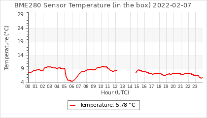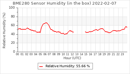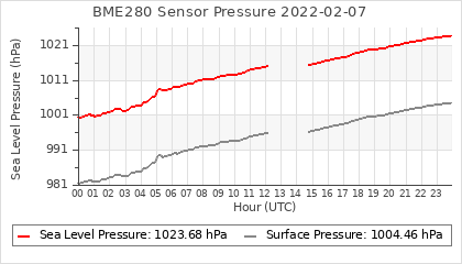 Experimental atmospheric pressure measurement with a simple sensor: BOSCH BME280The instrument is in the data collection box of the CR10X, the temperature and humidity do not reflect the real air conditions, because the box is in the sun and is not properly ventilated for these measurements.