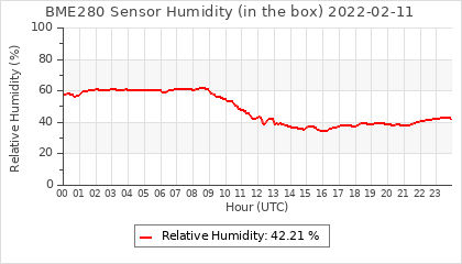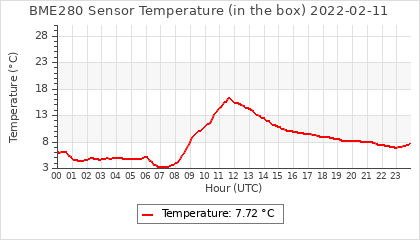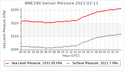 Experimental atmospheric pressure measurement with a simple sensor: BOSCH BME280The instrument is in the data collection box of the CR10X, the temperature and humidity do not reflect the real air conditions, because the box is in the sun and is not properly ventilated for these measurements.