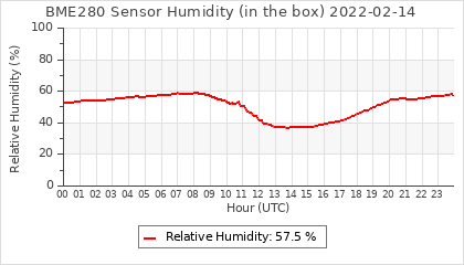 Experimental atmospheric pressure measurement with a simple sensor: BOSCH BME280The instrument is in the data collection box of the CR10X, the temperature and humidity do not reflect the real air conditions, because the box is in the sun and is not properly ventilated for these measurements.