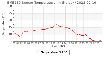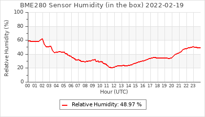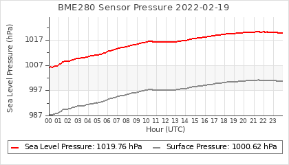 Experimental atmospheric pressure measurement with a simple sensor: BOSCH BME280The instrument is in the data collection box of the CR10X, the temperature and humidity do not reflect the real air conditions, because the box is in the sun and is not properly ventilated for these measurements.