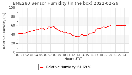 Experimental atmospheric pressure measurement with a simple sensor: BOSCH BME280The instrument is in the data collection box of the CR10X, the temperature and humidity do not reflect the real air conditions, because the box is in the sun and is not properly ventilated for these measurements.