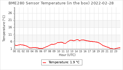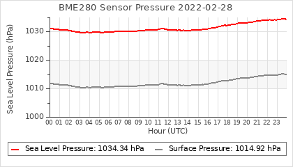 Experimental atmospheric pressure measurement with a simple sensor: BOSCH BME280The instrument is in the data collection box of the CR10X, the temperature and humidity do not reflect the real air conditions, because the box is in the sun and is not properly ventilated for these measurements.