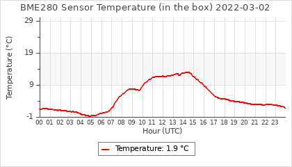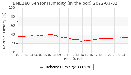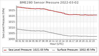 Experimental atmospheric pressure measurement with a simple sensor: BOSCH BME280The instrument is in the data collection box of the CR10X, the temperature and humidity do not reflect the real air conditions, because the box is in the sun and is not properly ventilated for these measurements.