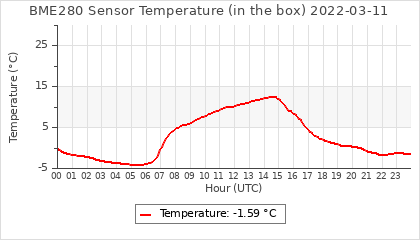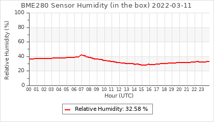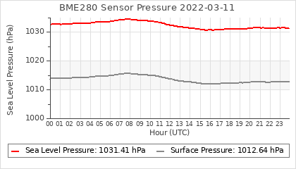 Experimental atmospheric pressure measurement with a simple sensor: BOSCH BME280The instrument is in the data collection box of the CR10X, the temperature and humidity do not reflect the real air conditions, because the box is in the sun and is not properly ventilated for these measurements.