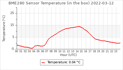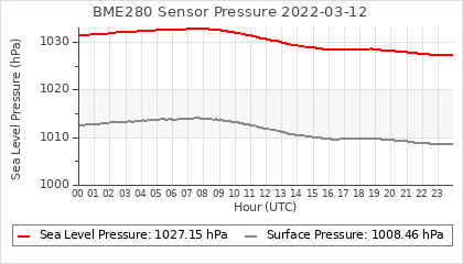 Experimental atmospheric pressure measurement with a simple sensor: BOSCH BME280The instrument is in the data collection box of the CR10X, the temperature and humidity do not reflect the real air conditions, because the box is in the sun and is not properly ventilated for these measurements.