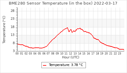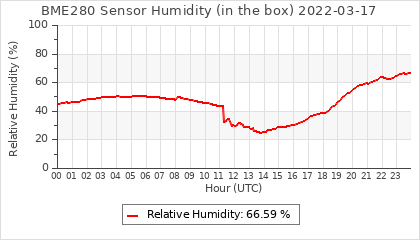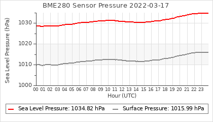 Experimental atmospheric pressure measurement with a simple sensor: BOSCH BME280The instrument is in the data collection box of the CR10X, the temperature and humidity do not reflect the real air conditions, because the box is in the sun and is not properly ventilated for these measurements.